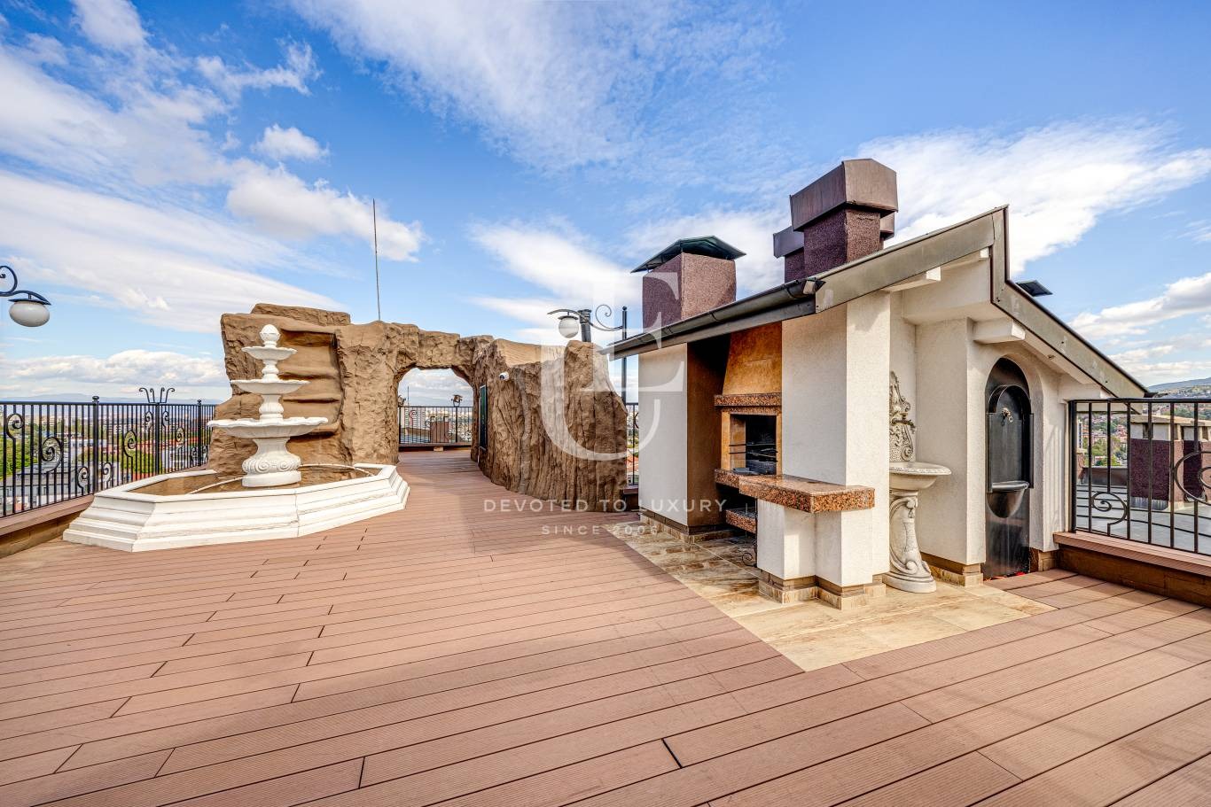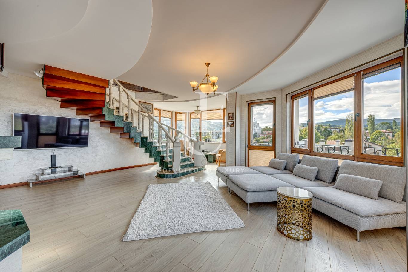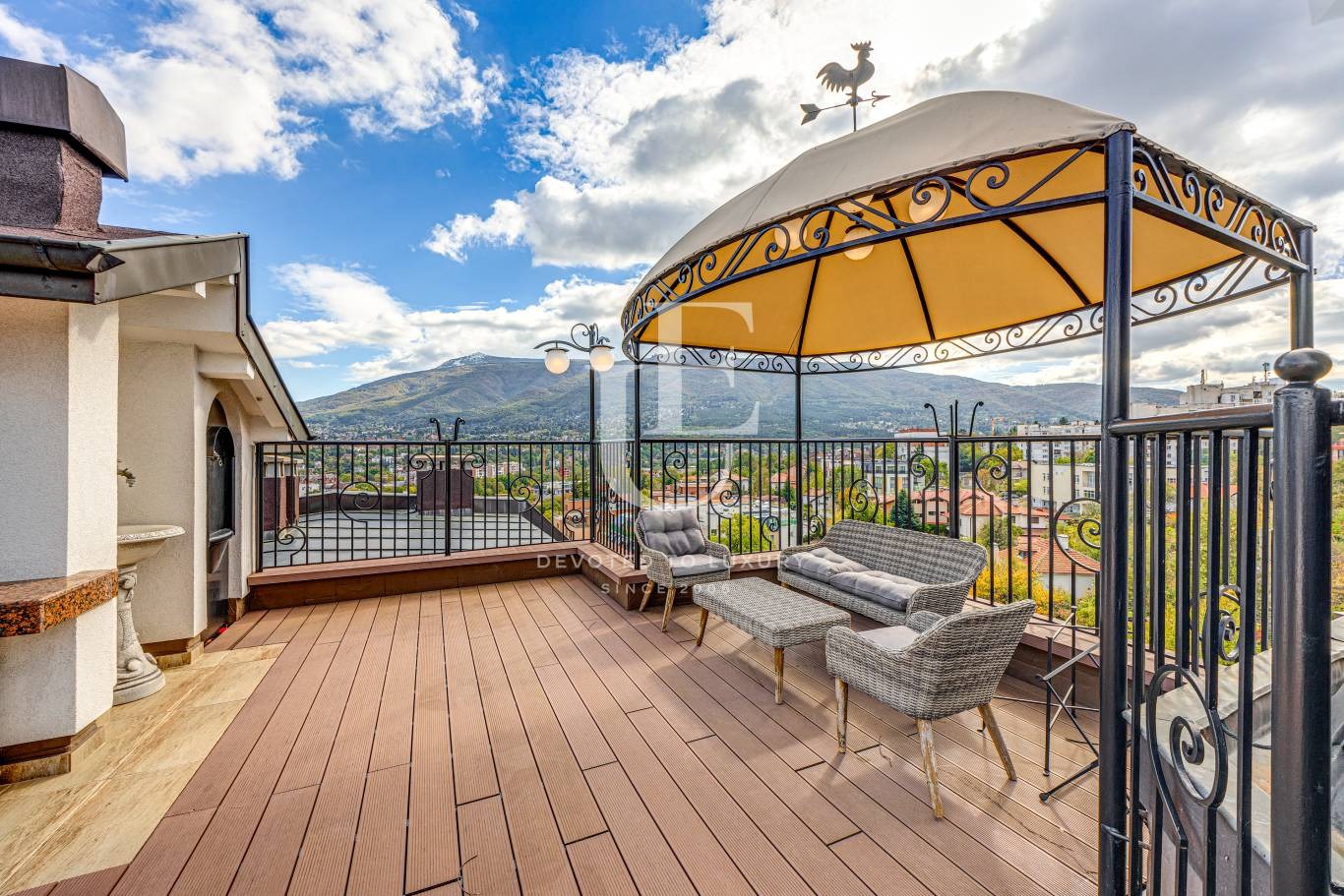 Жилището разполага с 200 кв.м вътрешна площ и впечатляваща тераса от 100 кв.м, която разкрива красива панорамна гледка към Витоша и е подходяща за лятна кухня и зона за релакс.