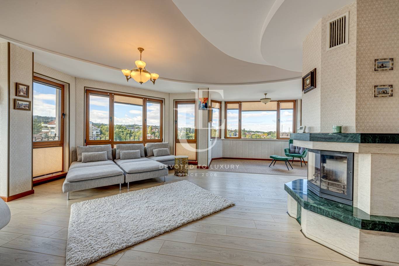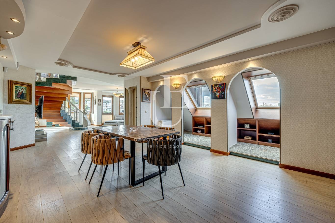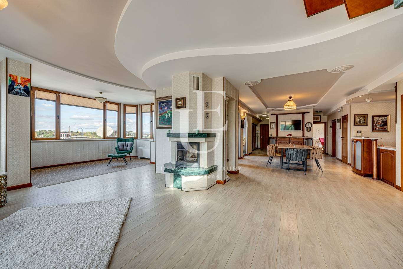 Жилището разполага с 200 кв.м вътрешна площ и впечатляваща тераса от 100 кв.м, която разкрива красива панорамна гледка към Витоша и е подходяща за лятна кухня и зона за релакс.