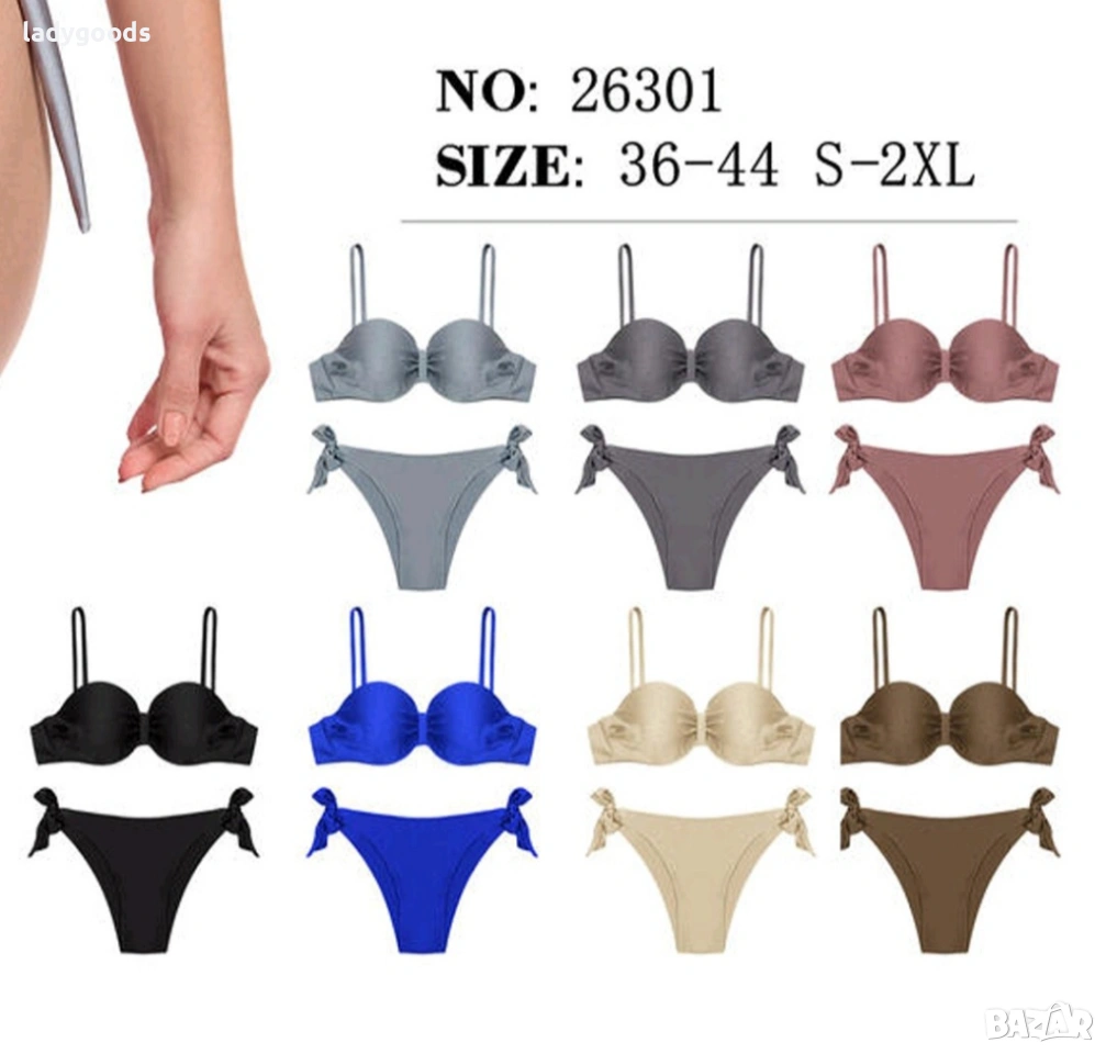 Налични цветове - шоколадово кафяво,пясък(3ти на долния ред) и третия на горния ред.Банският костюм е подплатен и от двете страни.