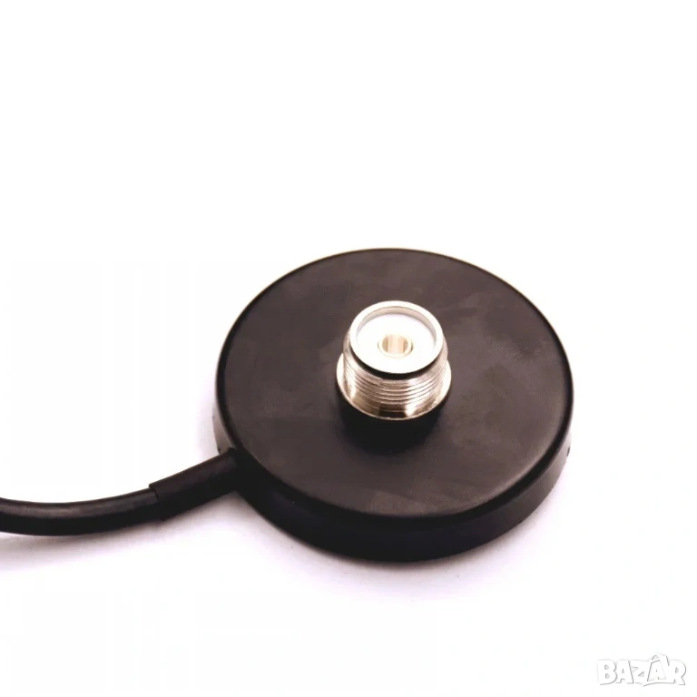 Тази мини магнитна основа за антена (55 mm) е практично решение за бърз монтаж на антени върху автомобил или метална повърхност. Подходяща е за мобилни радиостанции, CB радио и други комуникационни устройства.
