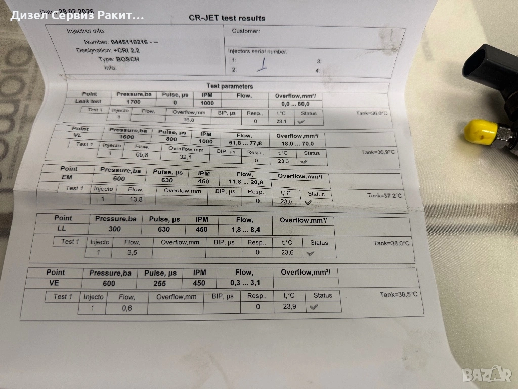 Всяка една дюза идва при вас придружена със разпечатка от стенд и гаранция 14дни.