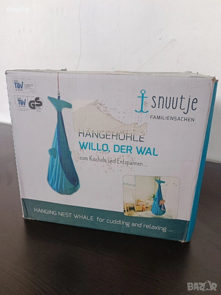 Чисто нова висяща люлка хамак във формата на Делфин. Има мека надуваема възглавница за седалка. Подходяща за деца над 3 г. Издържа макс. 80 кг. Перяща се. За детската стая за забавление и почивка. Немско качество със сертификат TUV. За гр. София може лично предаване.