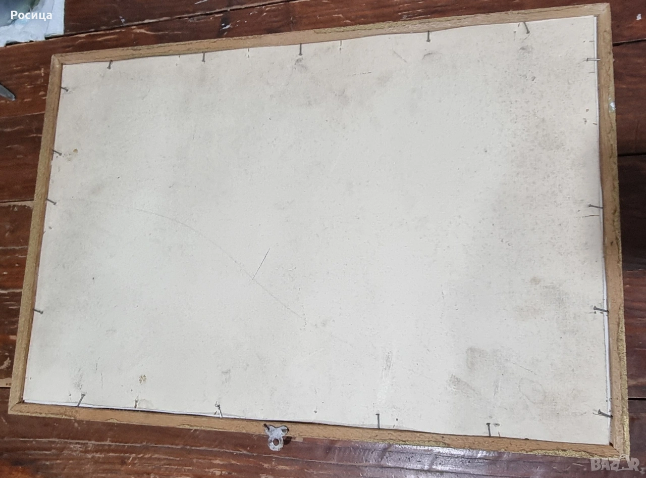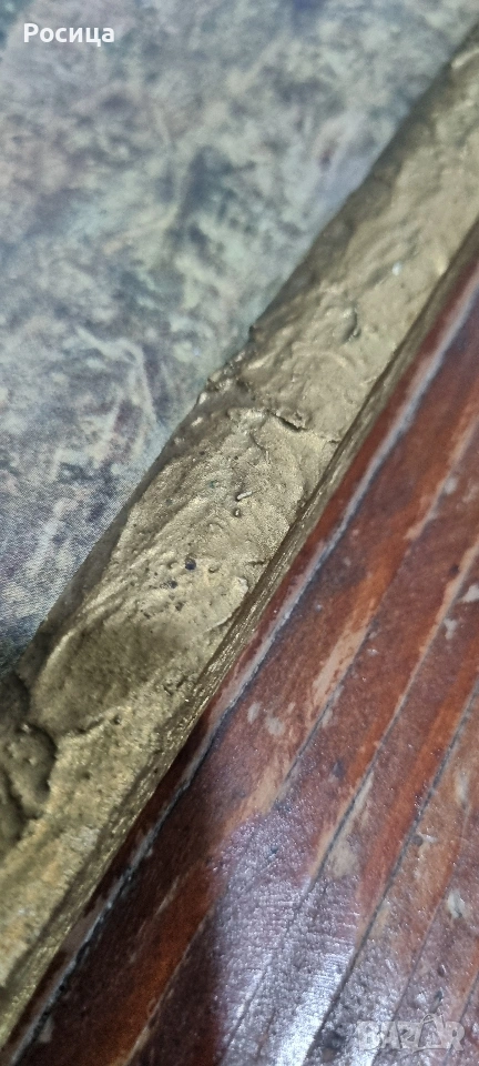 Старинен фотопринт зад стъкло и ръчно изработена релефна рамка от дървесина