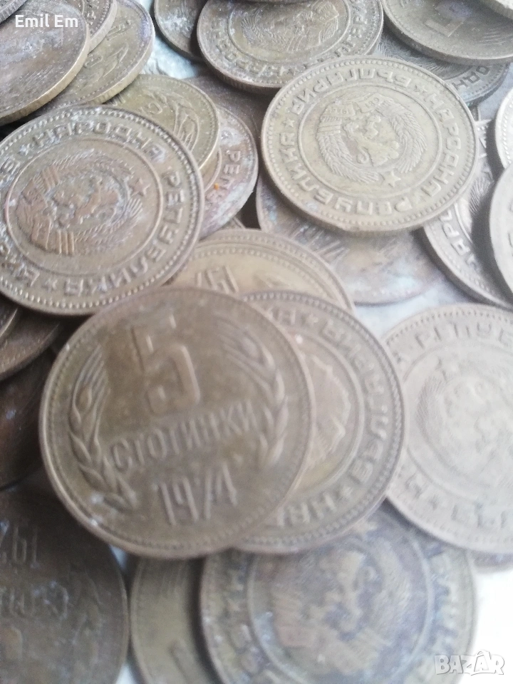 Продавам монети от 5 стотинки 1974 година 50 броя 100 евро.