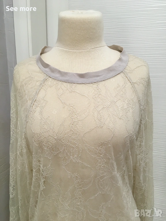 Дантелена риза/блуза Bruuns Bazaar в размер S в бежов цвят.Дължина 62 см,разстояние между мишници 50 см!