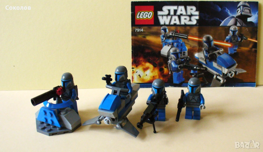 Минифигурки: 4 броя с различни оръжия и аксесоари : 1 мандалорски командир и 3-ма мандалорски войници