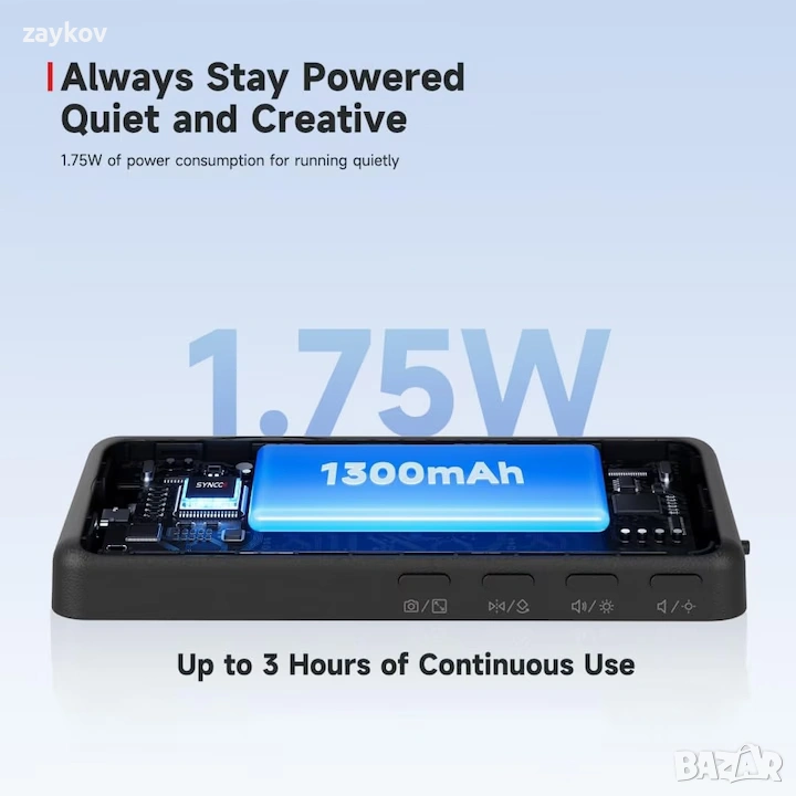 SYNCO XView M4 – Преносим монитор за професионални селфита Кажете сбогом на селфитата с предна камера! SYNCO XView M4 ви позволява да използвате основната камера на телефона си за по-ясни и живи изображения. С ултра-ниска латентност от само 40 ms и усъвършенстваната технология SYNCO, той предлага мониторинг в реално време, плавен и прецизен, както за изображение, така и за звук – идеален за влогове, стрийминг или създаване на качествено съдържание. Стабилен и сигурен магнитен дизайн Поддържан от силен N56 неодимов магнит, той се прикрепя здраво към гърба на телефона или към всяка метална повърхност, осигурявайки стабилно захващане без приплъзване. Нисък разход и тиха работа С консумация от само 1,75 W, той работи почти безшумно – идеален за ASMR или заснемане в тиха среда. Интегрираната батерия от 1300 mAh предлага до 3 часа непрекъсната употреба, а интелигентната система за управление на захранването предотвратява ненужното разреждане.