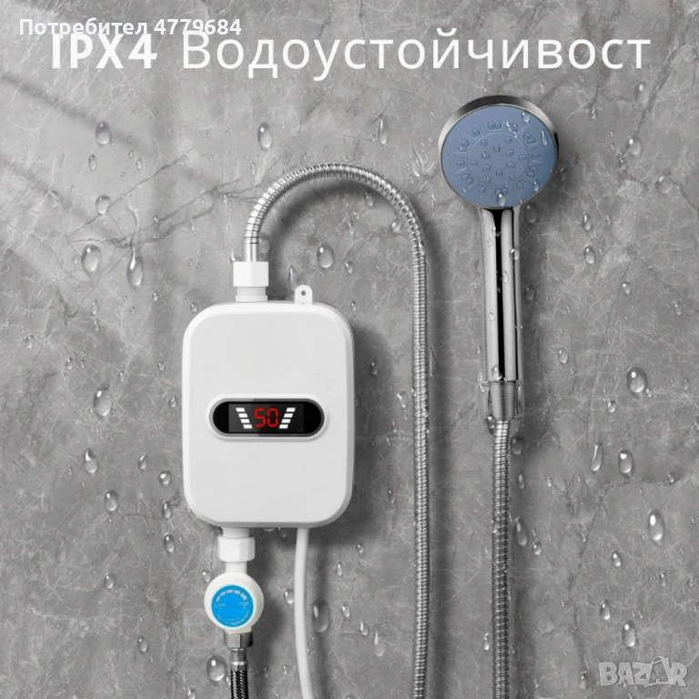 Проточен термостатичен бойлер за мигновена топла вода – Комплект с душ слушалка и регулатор