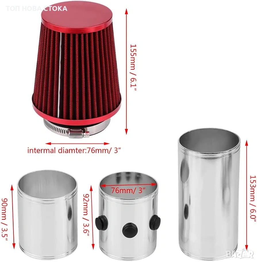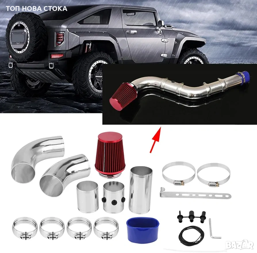 Универсален Спортен филтър + алуминиеви въздуховоди 76мм → Обява 54000805