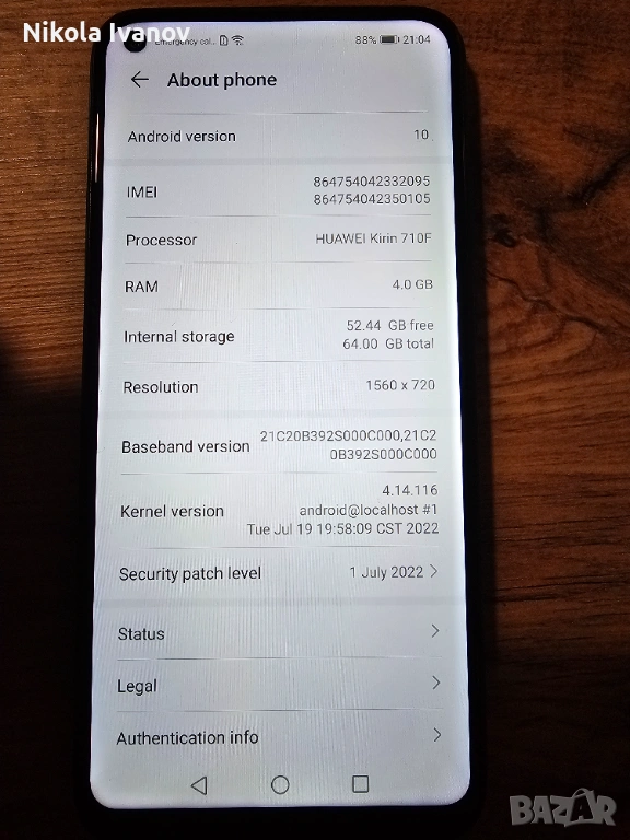 Процесор: Kirin 710F - 8 ядрен процесор (4x2.2 GHz Cortex-A73 & 4x1.7 GHz Cortex-A53)