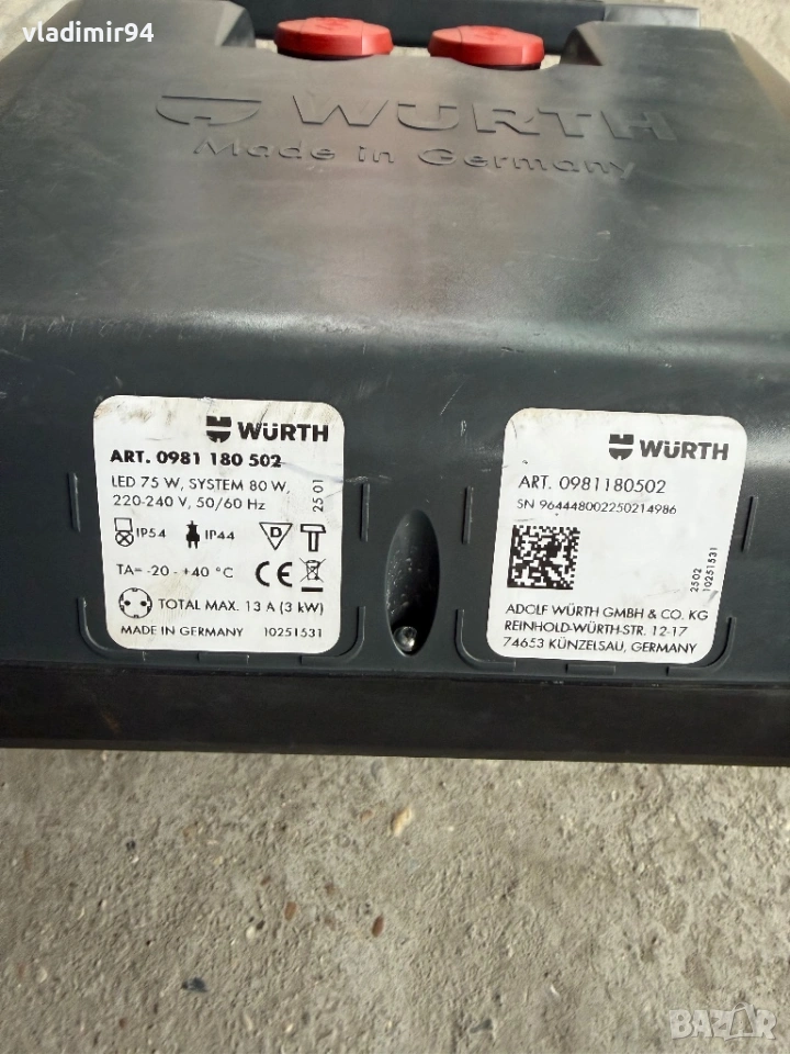 Wurth работна лампа → Обява 54001028