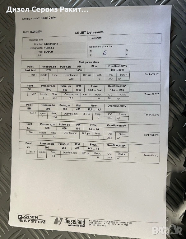 Всяка една дюза идва при вас придружена със разпечатка от стенд и гаранция 14дни.