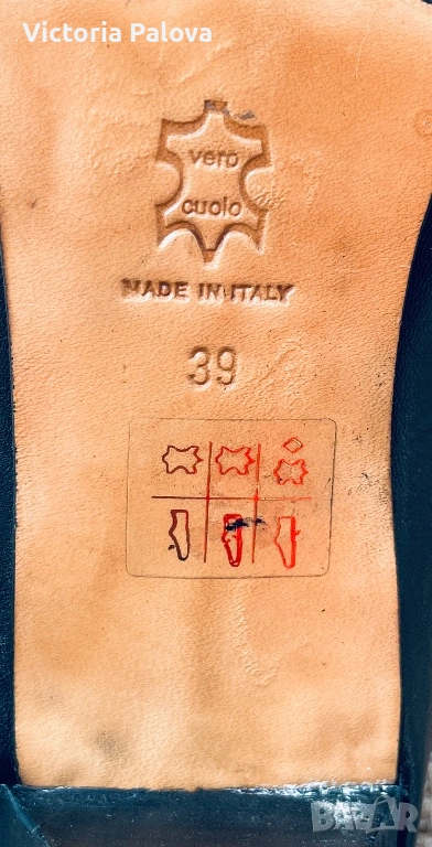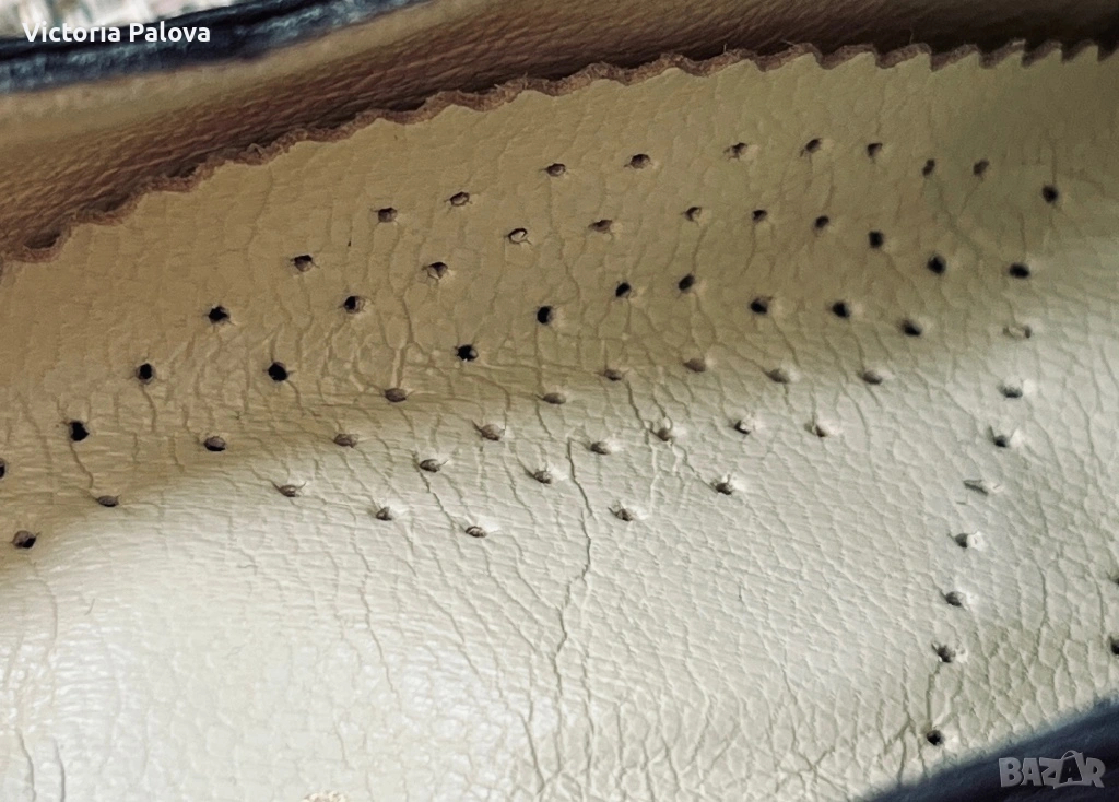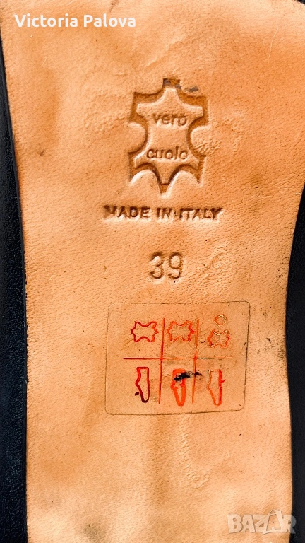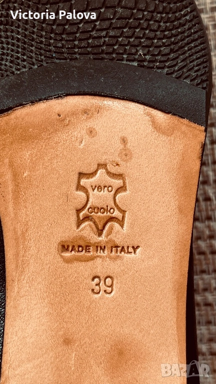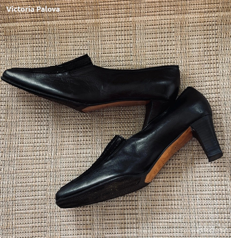 Miss Iside Comfort, размер 39 – италиански модел, който се отличава с актуалния квадратен нос. Това е форма, която в момента се върна в модата, стои по-издържано, по-чисто и по-елегантно от острите обувки, без да изглежда агресивно. Изпълнението е на ниво – всичко е естествена кожа: горна част, вътре, подметка (vero cuoio). Кожата отпред е с фина лазерна обработка (микроперфорация), която създава лек релеф и дълбочина – детайл, който придава завършен вид и ги отличава от обикновените гладки модели. В горната част има дискретни ластични вложки, които правят обувките значително по-удобни – обуват се лесно и прилягат добре, без напрежение при ходене. Това е модел, който стои много добре на крака – изчистен, но с достатъчно детайл, за да не бъде обикновен. Италианска изработка, естествени материали и форма, която в момента е на върха на тенденциите.