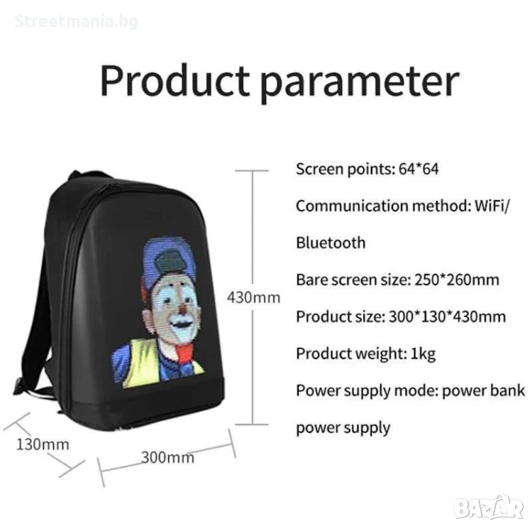 Smart Pixel LED Раница с екран – реклама и стил в движение!