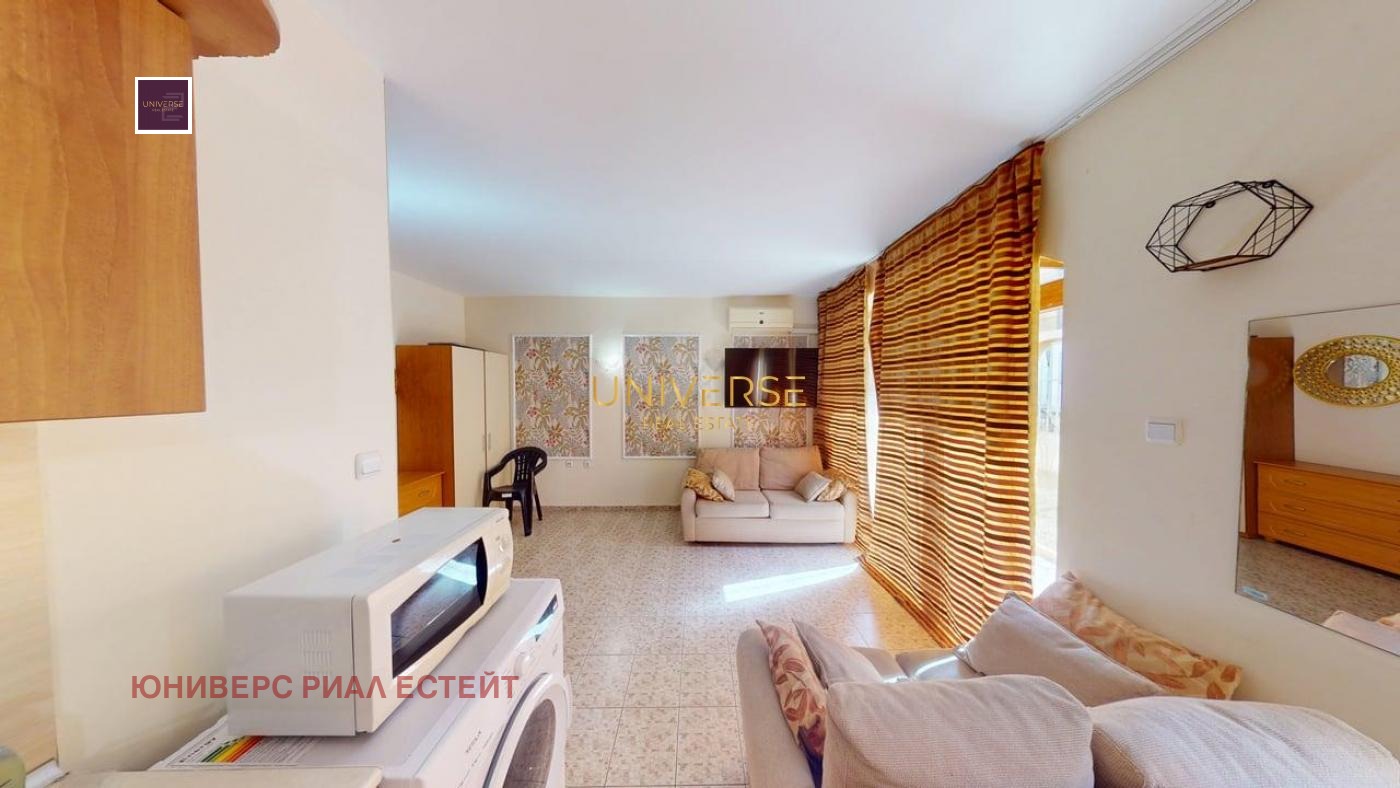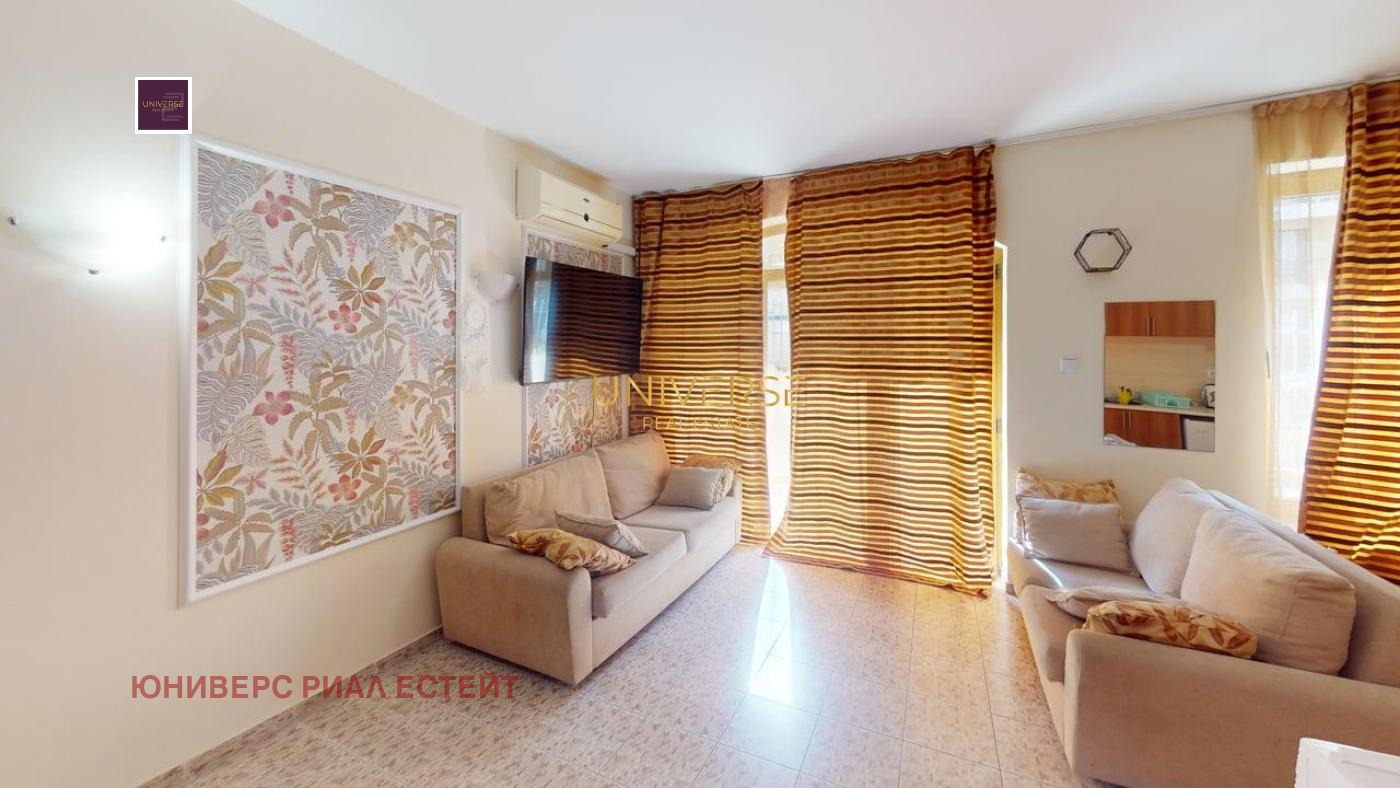 Продается квартира-студия в круглогодичном комплексе на Солнечном Берегу. Продается мебель и техника. В комплексе есть бассейн для взрослых и детей, ресторан, рецепция, детская площадка, парковка, охрана и обслуживание общих зон. Акт 16! Такса обслуживания: 9,5 евро/кв. м в год.#5695