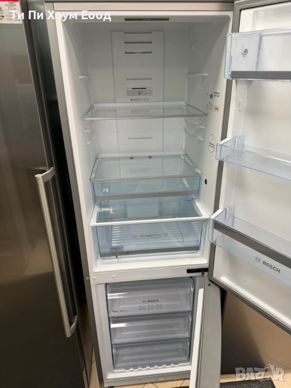 NoFrost: Постоянното циркулиране на сух въздух в хладилника с фризер не допуска натрупването на лед по стените и няма нужда от размразяване.