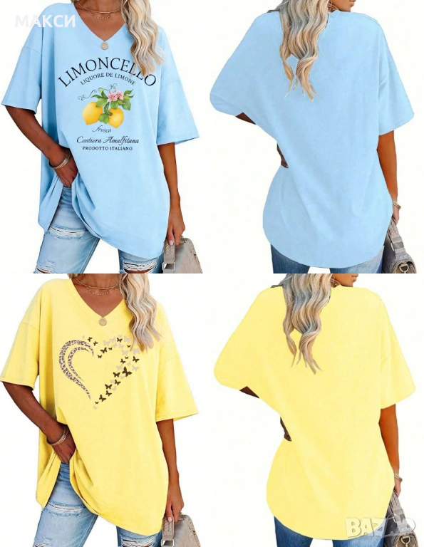 Макси модерна дълга еластична и мека тениска в жълто и светло синьо с красиви апликации → Обява 54003064