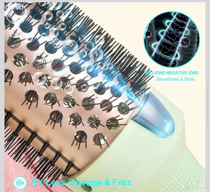 Предназначение: Използва се за изправяне, оформяне и добавяне на обем на косата, като комбинира функциите на четка и нагряващ уред.