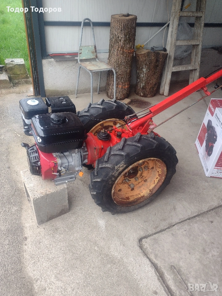 Мотоблок, мотофреза или мотокултиватор акме след основно сервизиране и рециклиране и нов двигател. С фреза.