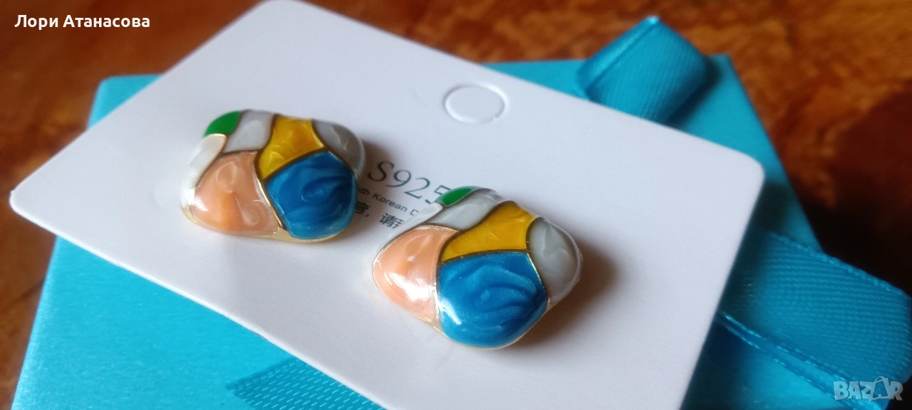 Двойка бохемски многоцветни геометрични кръгли обеци с елегантен и модерен стил → Обява 54003341