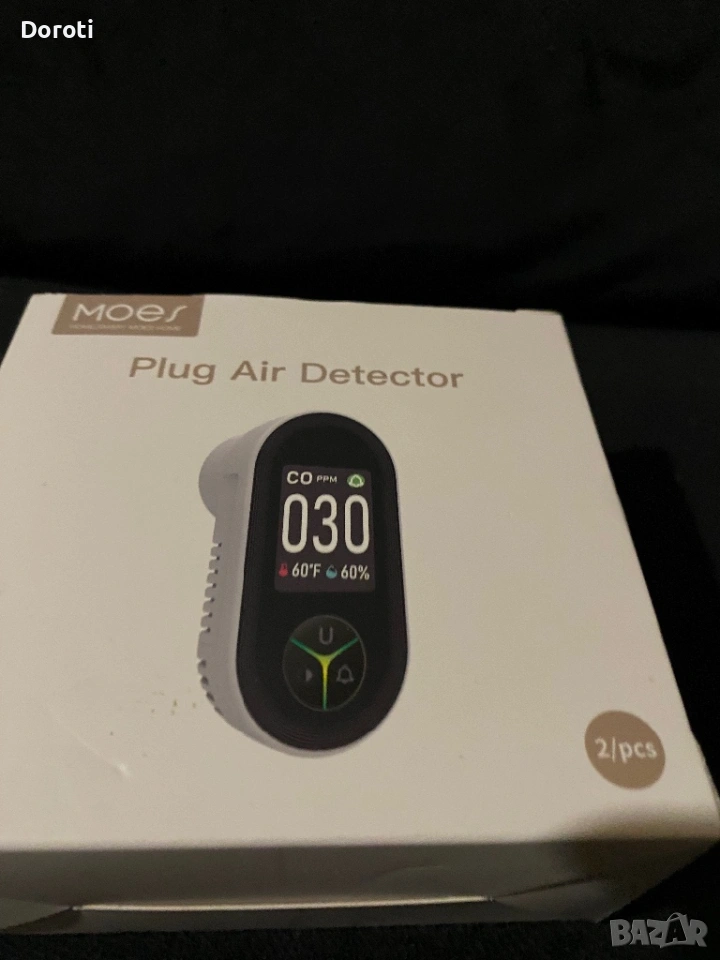 Детектор за въглероден оксид (CO), щепселен, с 3-в-1 дисплей, сензор за температура и влажност 2 бр