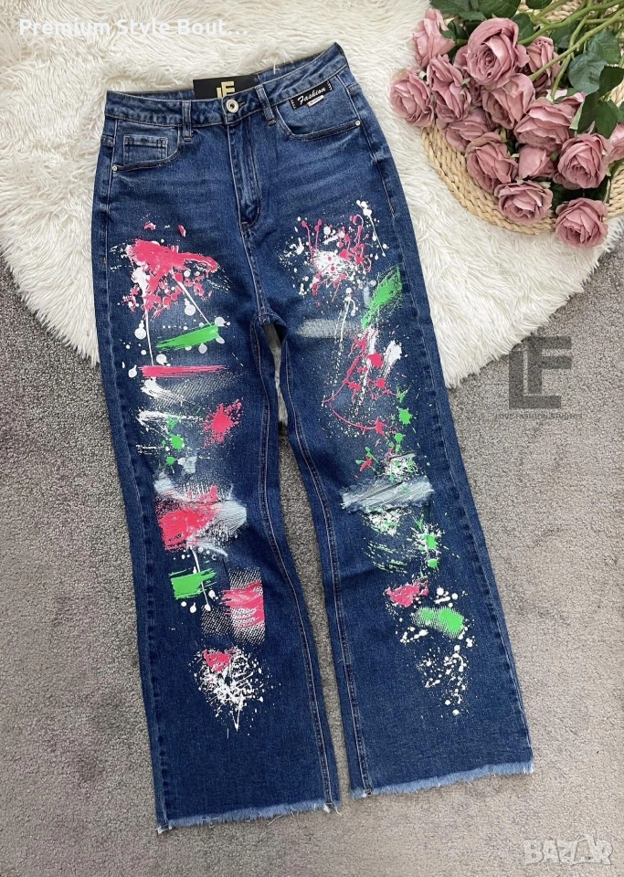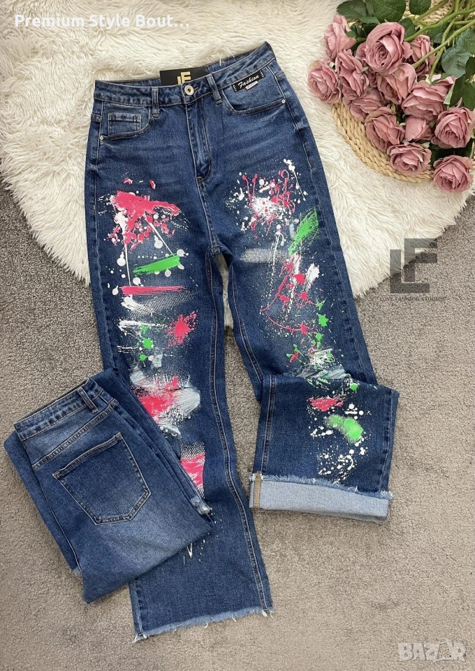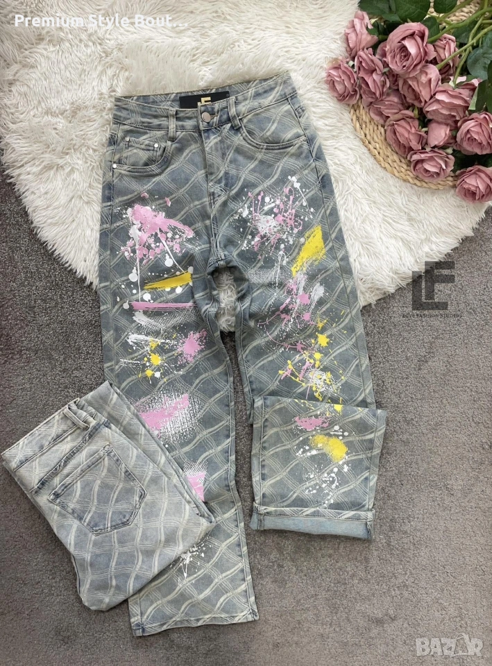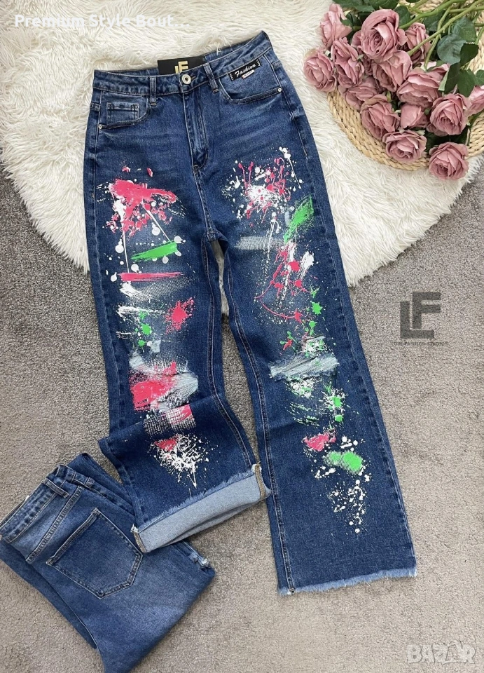 Дънки LFS Love Pink 1041 33.90€ (66.30лв.) Материя: Деним със средна еластичност ( 69% памук, 30% полиестър, 1% еластан ) Кройка: Кройката е с прави, широки крачоли, издължаваща, средна към висока талия, ръчно рисувaни #LFS Стилистите съветват: Любима кройка и стилен цвят, от които не можем да свалим очи. Точно тези са със средна към висока талия, прави с издължаващ ефект! Излишно е да казваме, че са в графа #musthave, но ако все пак се чудите дали имате нужда от тях и с какво ще ги съчетаете, казваме Ви – да, имайте ги и ги носете смело с всичко в гардероба си от ризи до дантелени блузи или oversize тениски. Дължина: Цяла дължина 100 см, дължина от вътрешната част на крачола 75 см Размер на снимката – S