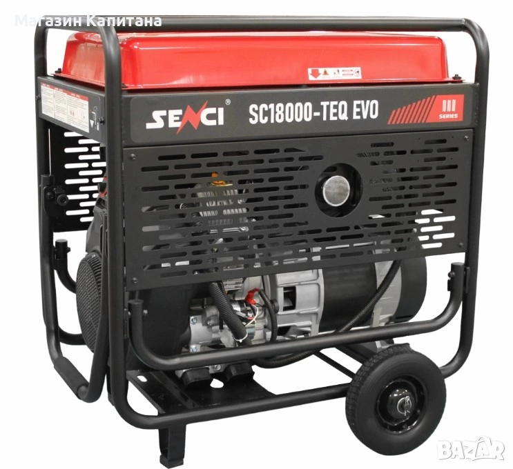 60-литровият резервоар осигурява до 10 часа работа при 50% натоварване, а интегрираните колела улесняват транспортирането. Генераторът работи тихо, по екологични стандарти, с минимални вредни емисии. Моделът е оборудван с ATS система за автоматичен старт при прекъсване на тока и AVR стабилизатор, който поддържа постоянен волтаж. Генераторът SENCI SC18000TEQ EVO е висококласен трифазен бензинов генератор, създаден за надеждно резервно и индустриално електрозахранване. Мощният 32 к.с. четиритактов двигател GB1000 осигурява 17 kW мощност и стабилно 400 V трифазно напрежение, което гарантира непрекъсната работа при тежки натоварвания.