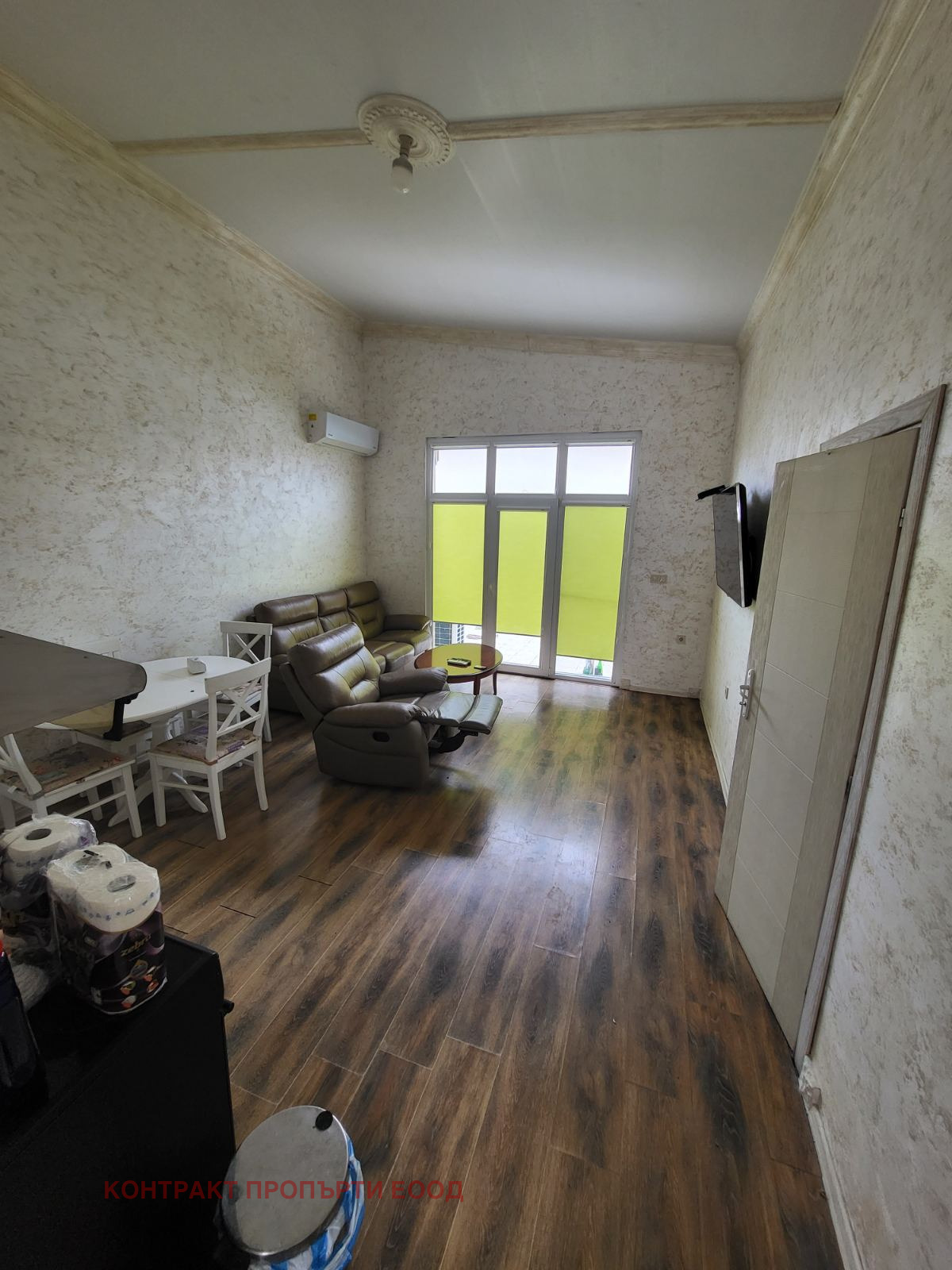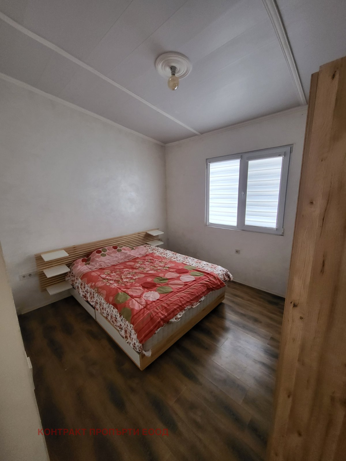 Разпределение: входно антре, баня с тоалетна, две спални и просторен хол с кухненски бокс.