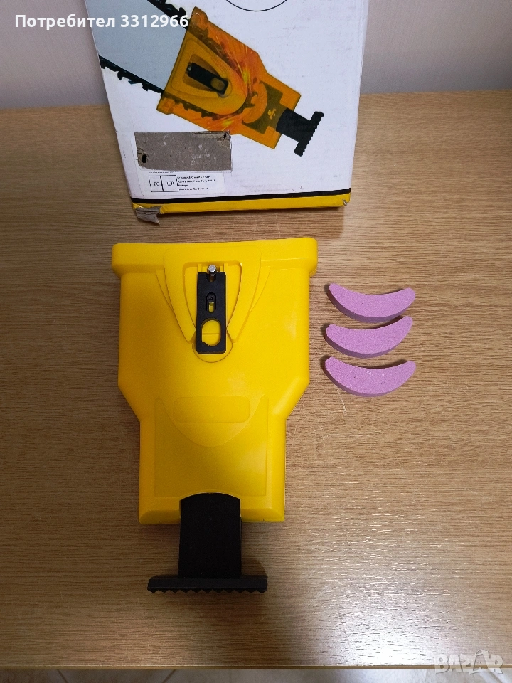 Компактна острилка за бързо заточване на верижен трион / Материал на изработка: първокласна висококачествена ABS пластмаса; 2 отвора за фиксирано заточване – единият фиксиран, а другият се движи напред-назад; Подходящ за вериги 14" / 16" / 18" / 20";