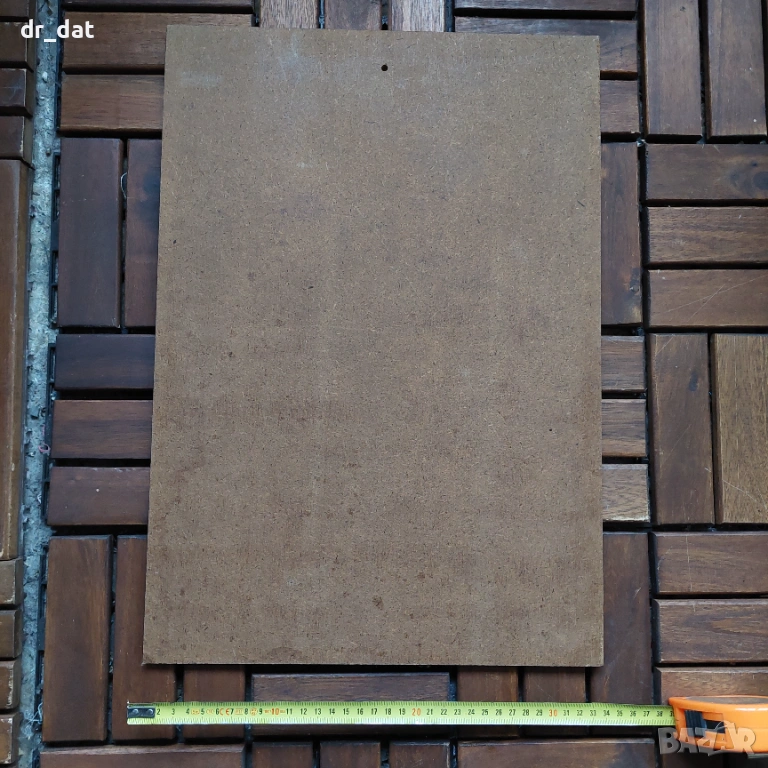 Размер: 37 см x 29 см на металната част, а на шпертплатовата основа се вижда на снимките.