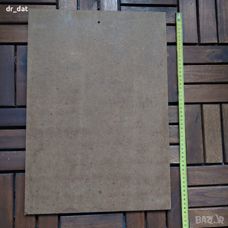 Размер: 37 см x 29 см на металната част, а на шпертплатовата основа се вижда на снимките.