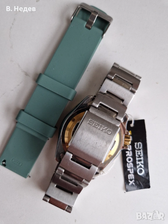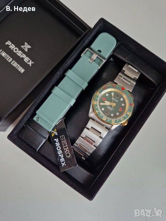 Продаваме този фантастичен, уникален нов SEIKO Prospex Marinemaster, и изключително рядък със зелен ЦБ - бридж-покер, автоматичен часовник - automatic – cal. 4R35B, Japan - 100% автентичен! Произведство след 2010г. манифактура SEIKO Corporation, Tokyo, Japan; механизъм - Seiko 4R35B много надежден и безотказен; ограничен обем на производство; с перфектни показатели; Технически данни - 23 рубинови камъка, F = 21600 A / Ч - честота на вибрациите на баланса; резерв на хода - 40-41 часа ...