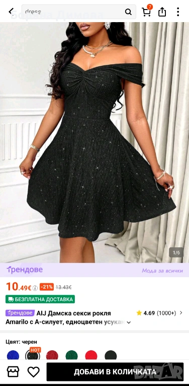 Продавам черна рокля от Shein