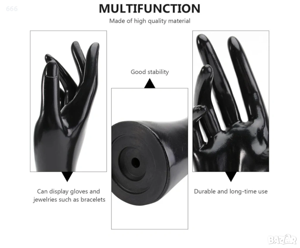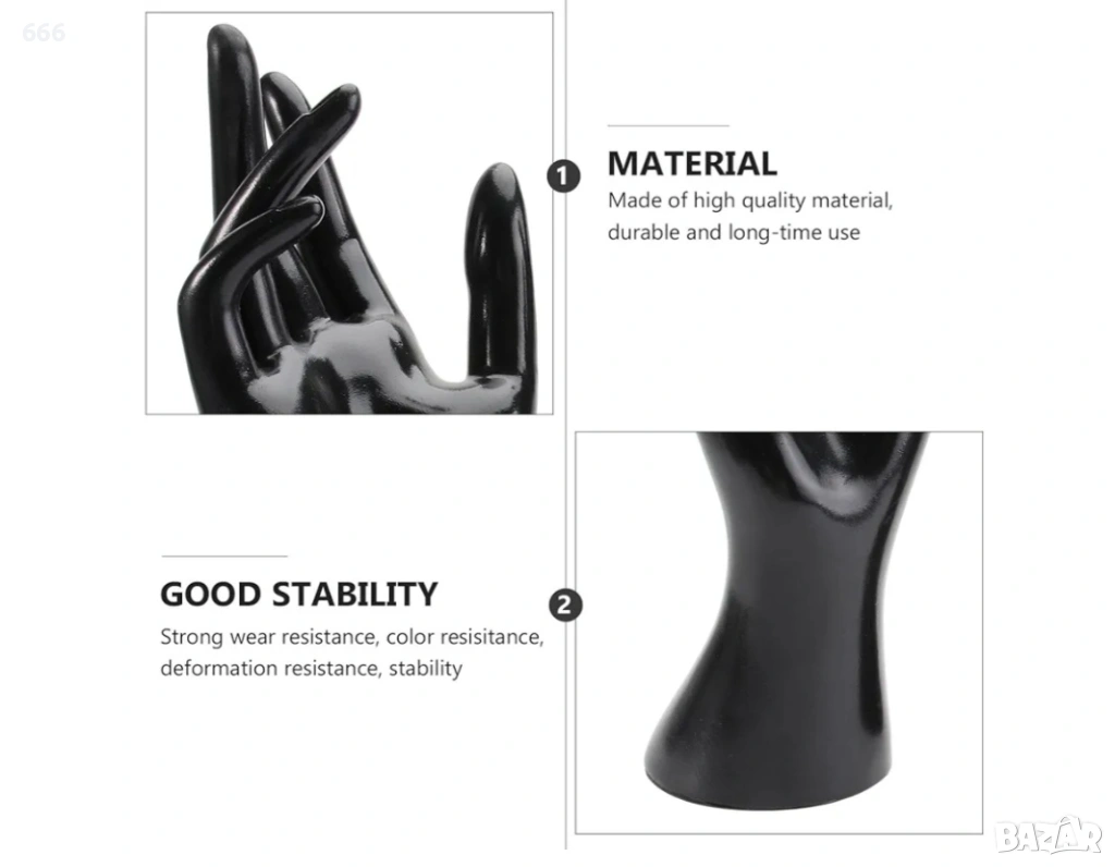 Многофункционална стойка за дисплей: Тази ръка за манекен за бижута е многофункционална, подходяща не само за показване на пръстени, но и гривни, часовници и ръкавици, което я прави идеална за търговски дисплеи, аранжировки на настолни компютри и домашна организация.