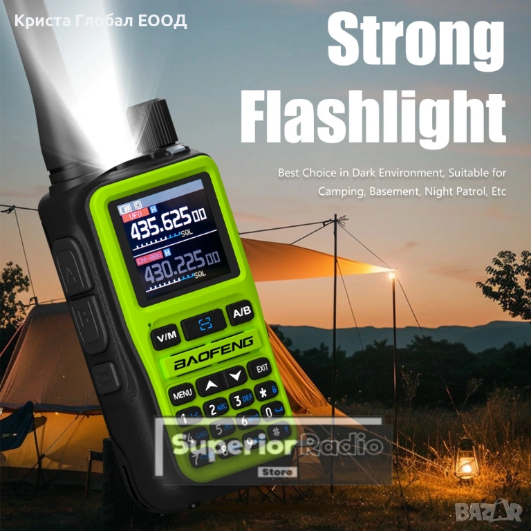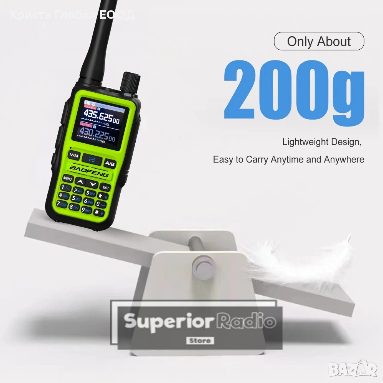 РЕАЛНИ 5W МОЩНОСТ: Въпреки малкия си размер, станцията "бие" здраво на VHF и UHF, като осигурява надеждна връзка на сериозни разстояния.