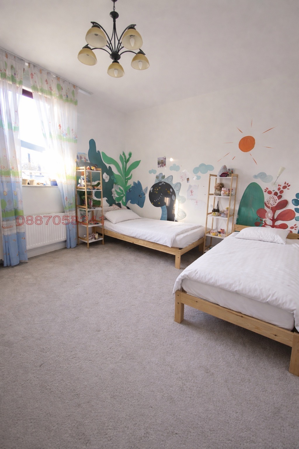 Разпределение: входно антре, просторен коридор, светла всекидневна с кухня и трапезария, три спални и два санитарни възела. Има тераса за отдих.