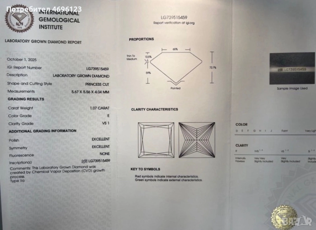 Основен диамант: 1,07 карата
