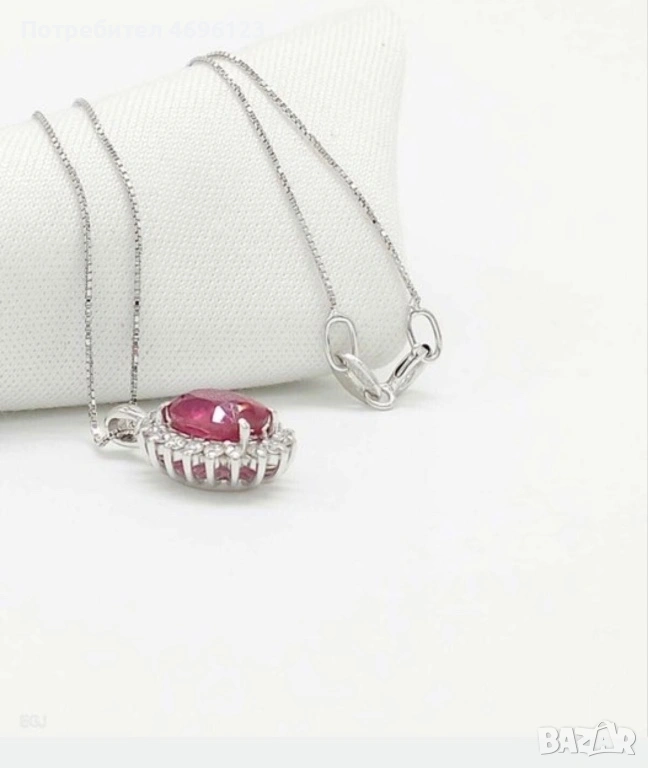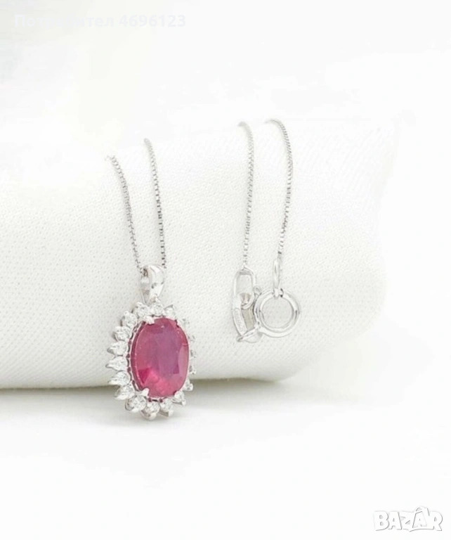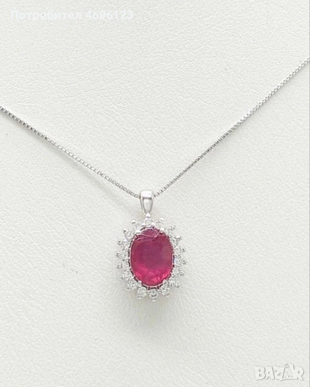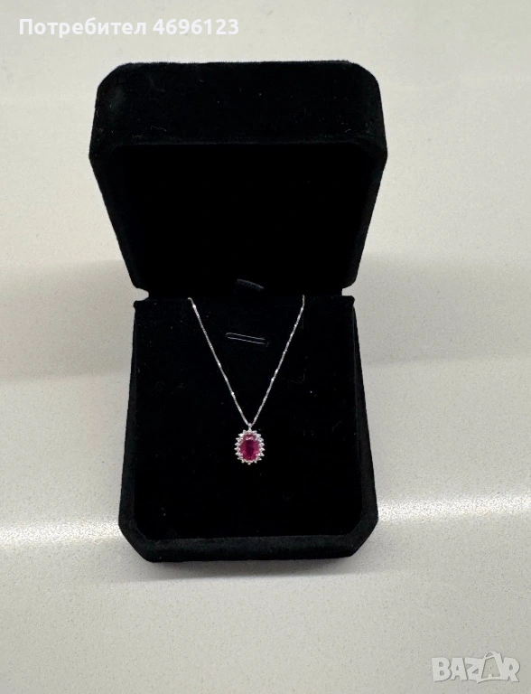 Диамантено Колие с Рубин /Бяло Злато 14кт → Обява 54004735