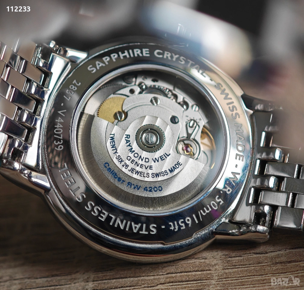 Raymond Weil Maestro Automatic Ниска цена за продажба кеш - 650 евро САМО ЗА ЛИЧНО ПРЕДАВАНЕ В ПЛОВДИВ. Възможен е и бартер с доплащане от Вас пак само лично в Пловдив!! ПРИ БАРТЕР ЦЕНА 800 евро!!! Пускам в продажба една истинска красота и класа. Изключително красив .елегантен часовник от най-висок клас на марката. Състояние като чисто нов. Пълен комплект с документи за автентичност,кутия и дори касова бележка! Купуван от Лондон. Моделът със стоманена верига никога не се е предлагал в България. Тук се е продавал вариант с кожена каишка на 1700 евро. Така че смятам,че цената е супер и НЯМА ДА СЕ КОМЕНТИРА!!! Caliber RW4200 е механичен автоматичен механизъм, произведен от Raymond Weil, базиран на механизма Sellita SW200-1, и има резерв на мощност от 38 до 41 часа, в зависимост от модела на часовника. Това е надежден и често срещан механизъм, подобен на ETA 2824-2, който захранва различни часовници Raymond Weil. Raymond Weil - Maestro 2837-STC-00659 Произход: Швейцария Стил: Ежедневно-елегантен Тип механизъм: Автомат /Навива се от движението на ръката/ Материал корпус: Висококачествена благородна стомана Размери корпус: Диаметър 39,5 мм Цифреблат: сребрист, римски цифри, сини стрелки Календар: Дата на 3 часа Тип стъкло: Сапфир - кристал с антирефлексно покритие