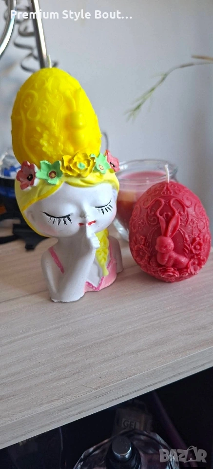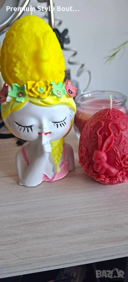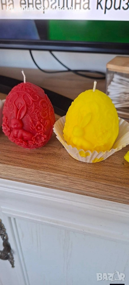 🐰🥚 Великденски свещи яйце със зайче Ръчна изработка – нежна и красива украса за Великден или оригинален подарък. ✨ Изработвам ги в много цветове: розово, синьо, лилаво, жълто, зелено, тюркоаз, златно и още. 🎁 Подходящи за подарък, празнична декорация или изненада за близък човек. ⚠️ Приемам ограничен брой поръчки преди Великден. 1 бр 6.00 € 2бр 10.00€ 3бр 14.00€