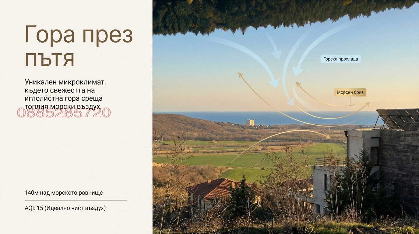 Това е място за хора, които търсят не просто земя, а пространство, чист въздух, спокойствие и усещане за качество на живота. Парцелът е разположен над основната застройка, което дава много красива и перспективна гледка.