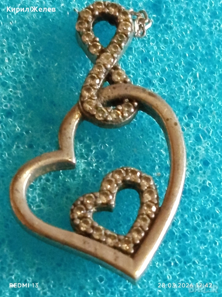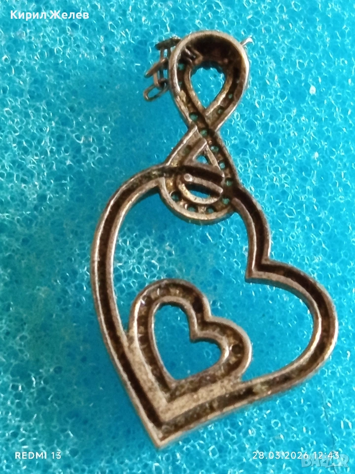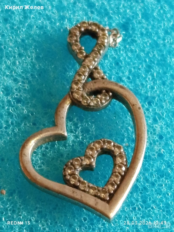 Сребърна висулка във формата на сърце ❤️ с символ безкрайност и цирконий нежно бижу 52927