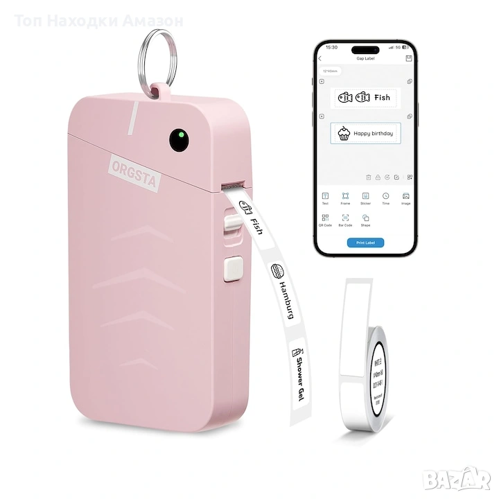 Принтер за етикети Orgsta, S001, Bluetooth, Преносим, Розов.