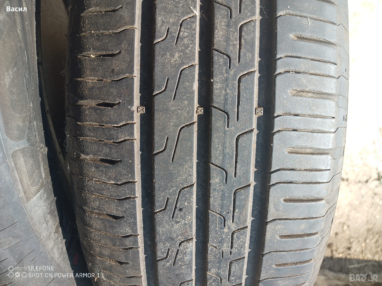 Гумите са в много добро състояние без криво балони фитили или напукано между грайфера. ЕДНАТА ГУМА ИМА ЛЕПЕНКА. Грайфер около 6,5мм. Цената на 1бр чисто нова е 97 Евро може да се провери в гугъл.