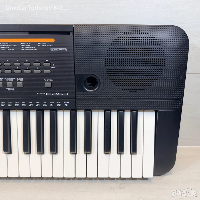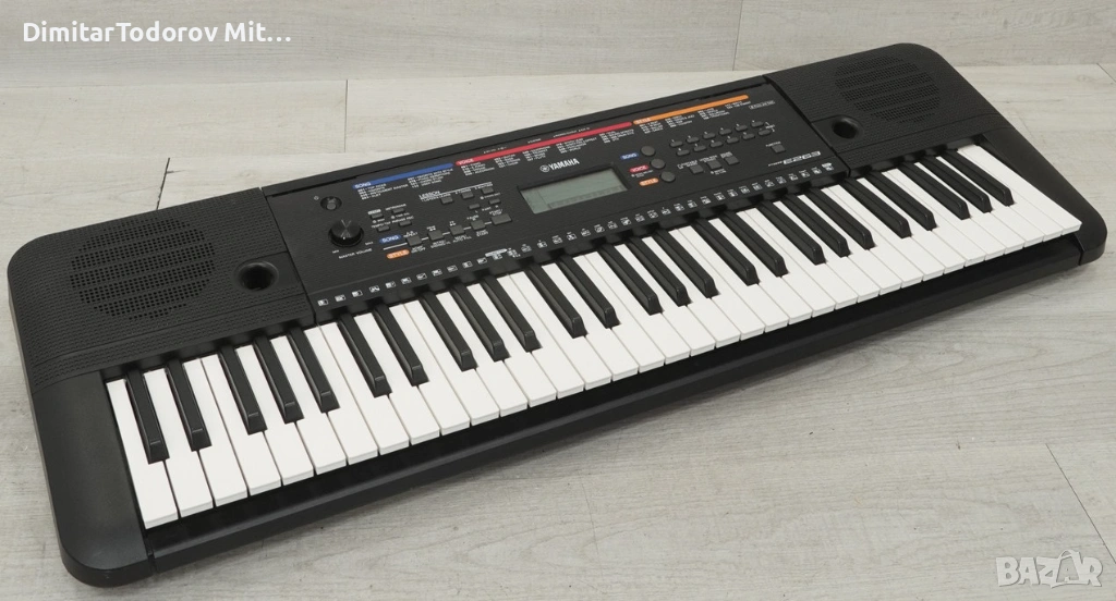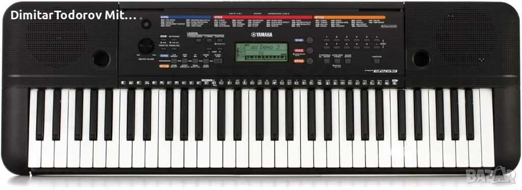61-клавиатурна портативна клавиатура с вграден високоговорител, включваща голямо разнообразие от звуци и функции. PSR-E263 е идеална клавиатура за амбициозни музиканти, които едва сега започват. Ямаха има гордост в производството на почти всеки вид музикален инструмент. Когато става дума за възпроизвеждане на звука на тези инструменти в клавиатурата, резултатите са подробни и висококачествени. Компактният, лек дизайн ви позволява да вземете инструмента си с вас където и да отидете. Батерията означава, че можете да настройвате и да свирите навсякъде, без да е необходимо да го включите! 3-стъпка урок - Слушане, време и чакане режими са на разположение за всяка ръка, или и двете ръце заедно. Уроците използват песните на устройството, за да ви помогнат да изградите уменията си. След това използвайте функцията за запис, за да запишете и да слушате ефективността си.