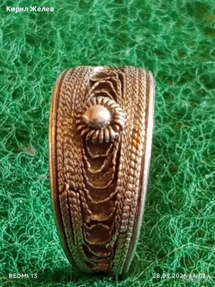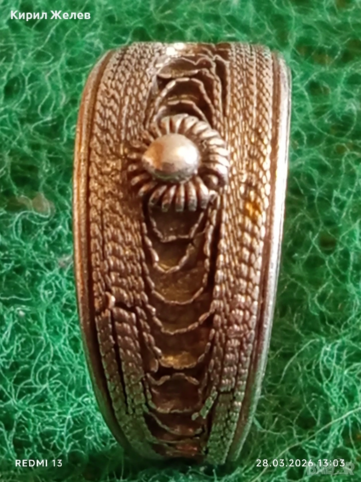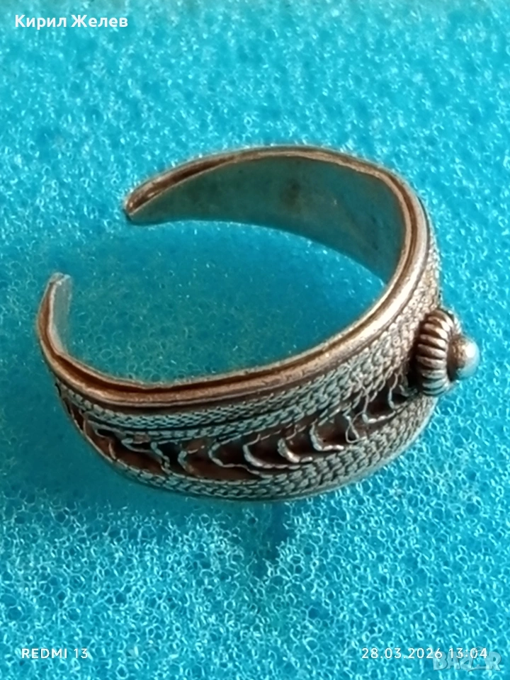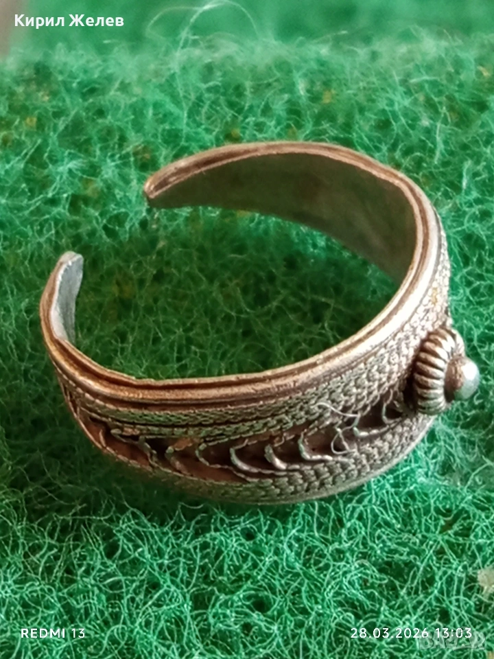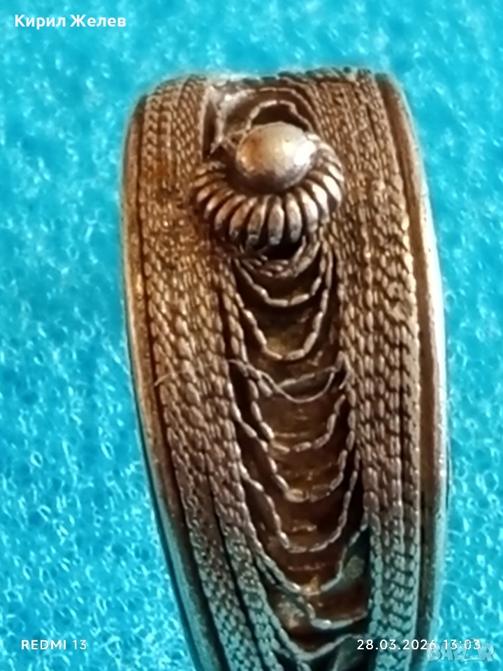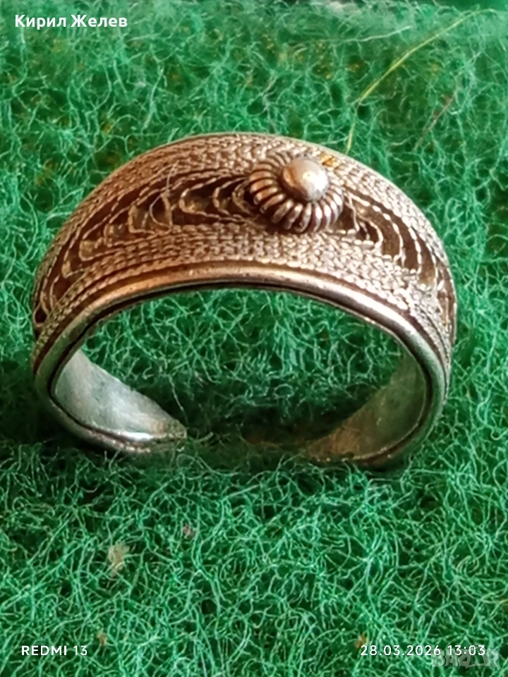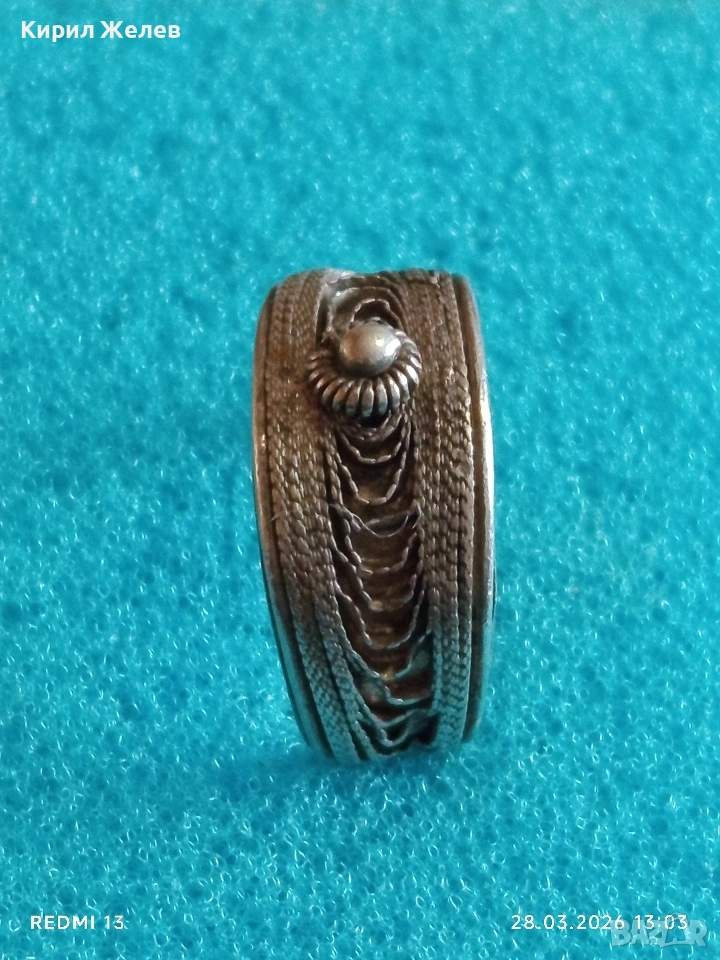 Сребърен пръстен филигранна изработка с гранулация възрожденски стил 41153