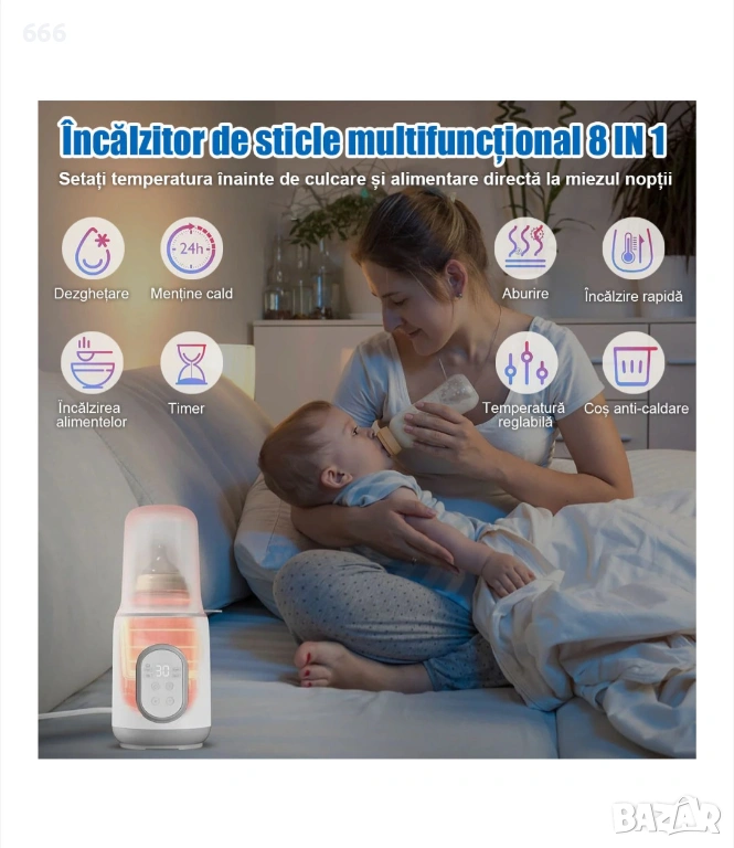 Нагревател Стерилизатор за Шишета, прецизен контрол на температурата, 8 в 1, поддържане на температурата 24ч, многофункционален, стерилизация, съхранение, загряване на бебешка храна, приложим за кърма или адаптирано мляко.