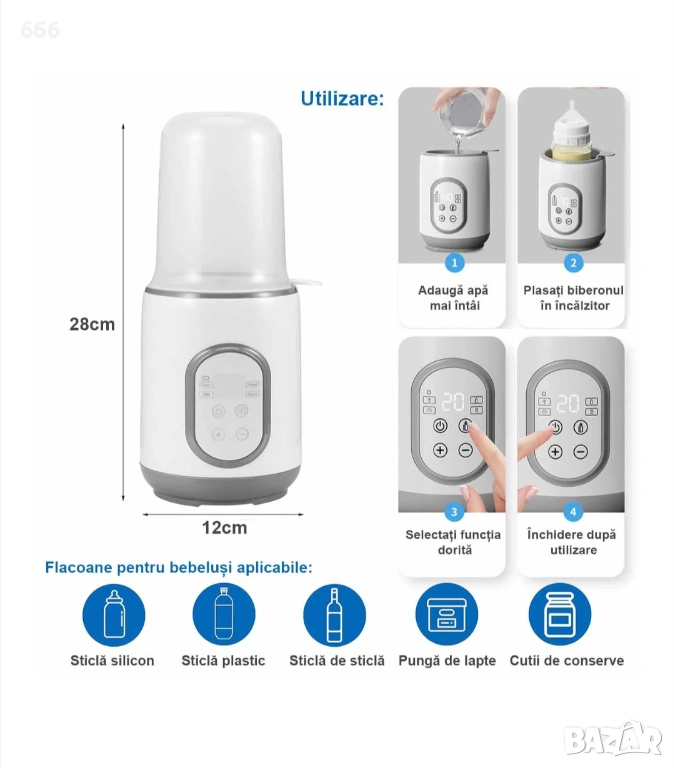 Нагревател Стерилизатор за Шишета, прецизен контрол на температурата, 8 в 1