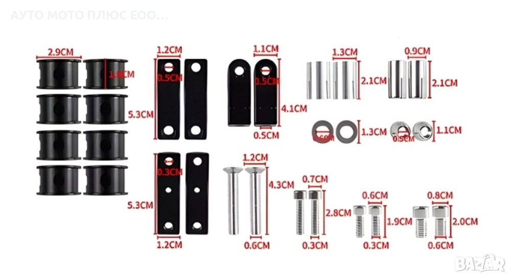 Пълен комплект монтажни елементи (болтове, втулки, скоби).
