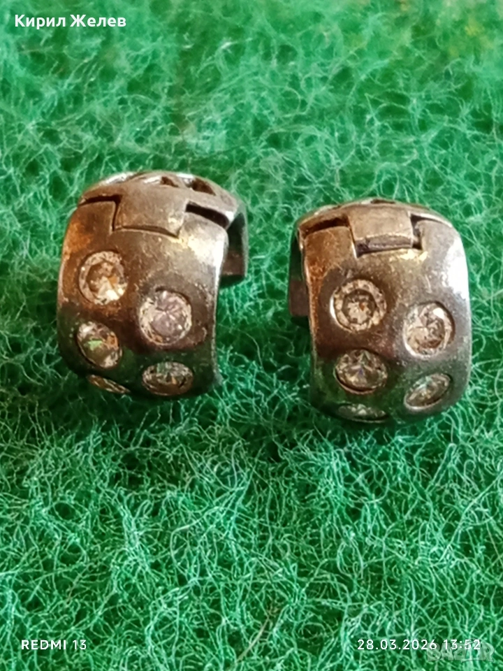 Винтидж сребърни обеци с инкростация на кристали 54177